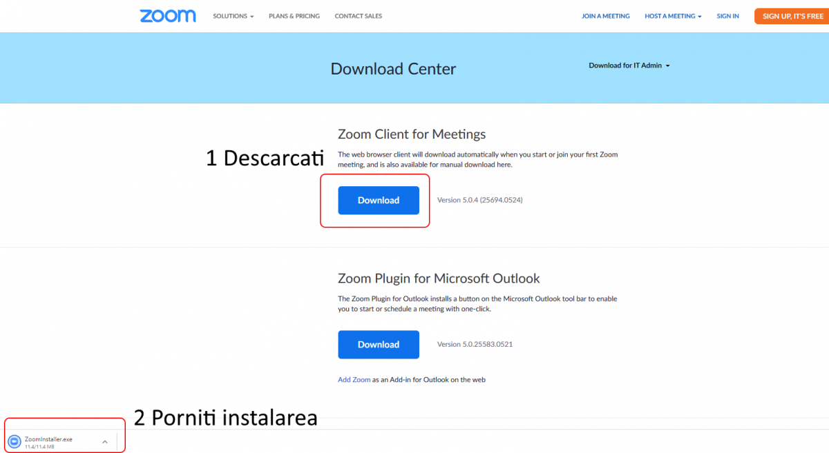 Descărcați aplicația de pe site-ul oficial: https://zoom.us/download (Zoom Client for Meetings)