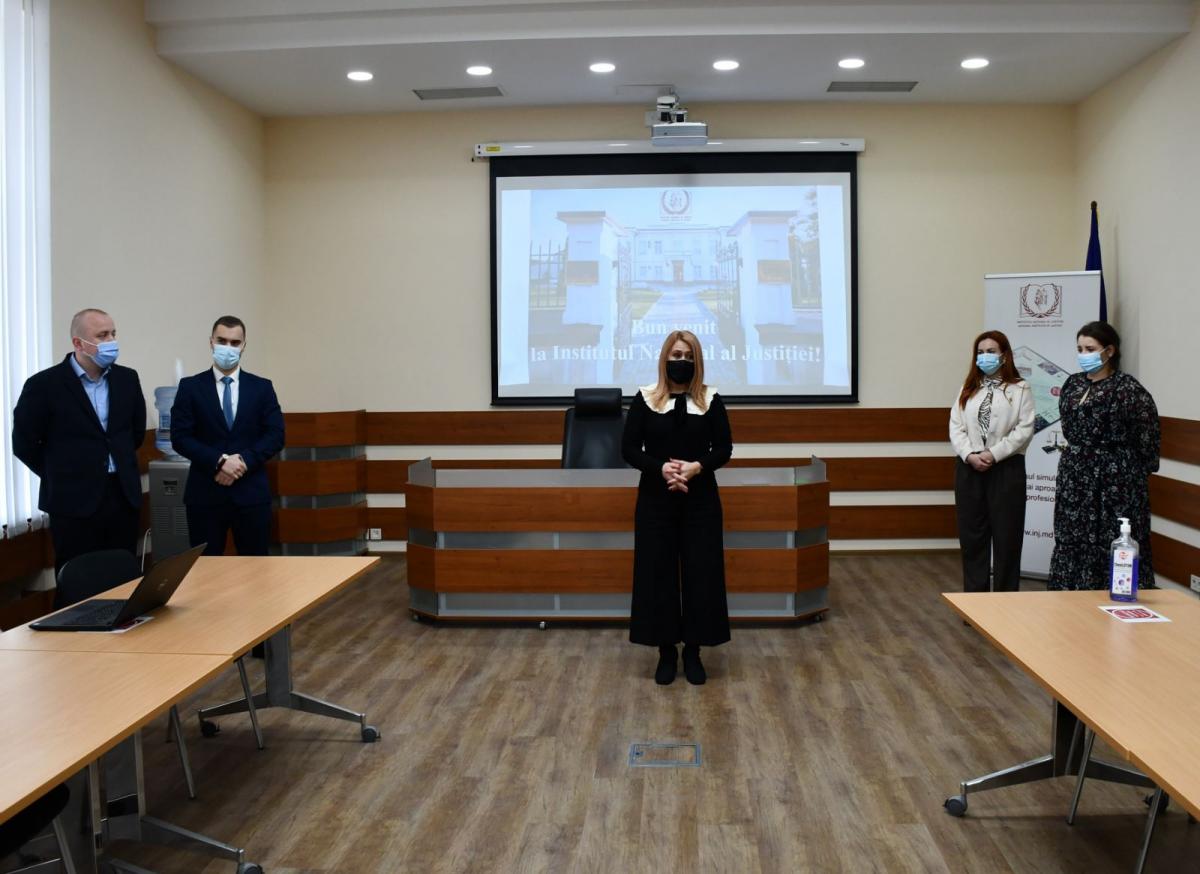 On Friday, December 17, 2021, 14 young, attended by their teacher Vadim Gribincea, prosecutor at the Leova District Prosecutor's Office, NIJ graduate, stepped on the threshold of the institution that trains future judges and prosecutors. Welcomed by Ecaterina Popa, Interim Director of NIJ, the students were acquainted with the operating and training model of the National Institute of Justice. The topics focused largely on the initial training of candidates for judges and prosecutors, as well as the benefits of the e-admission system and electronic testing implemented in the NIJ admission process.