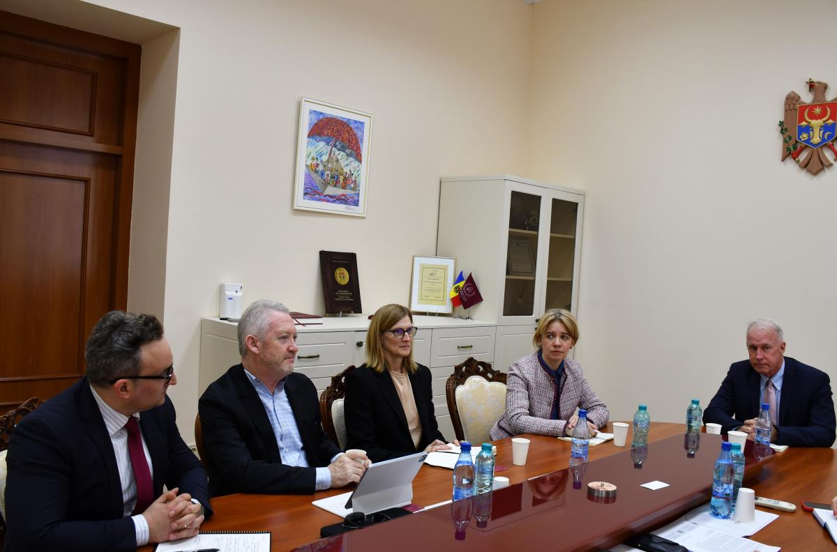 On Monday, February 26, 2024, at the National Institute of Justice, USAID anti-corruption experts were on a courtesy visit: Melissa Hooper and Andrew Solomon, who were accompanied by Otilia Bologan-Vieru, USAID Moldova legal program specialist, Kevin Laniga, senior advisor in the field of justice from Criminal Justice and Law Enforcement Section at the US Embassy in the Republic of Moldova, and Radu Foltea, the deputy task order lead within the JARA Project.