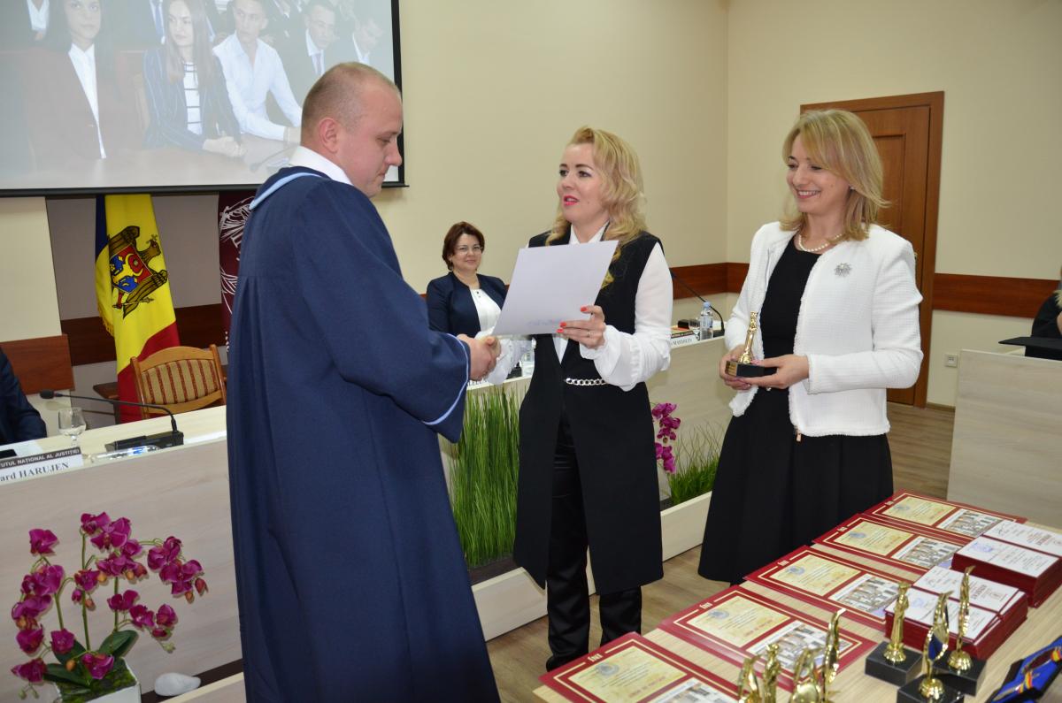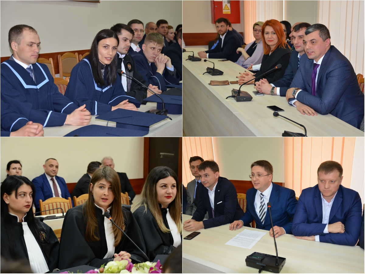 The ceremony culminated with handing over graduation certificates to future judges and prosecutors, and the best ones were rewarded with merit diplomas. As a result, diplomas with the leadership of the XIth promotion: for the best results obtained during the initial training at NIJ, Andrei Cazacicov, a candidate to the position of judge, and Octavian Bivol, candidate to the position of prosecutor; diplomas of merit with particular mention of organizational spirit in the activity of the group chief - Marta Bizgan, candidate to the position of prosecutor, and Inga Darii, candidate to the position of judge; diplomas of merit, in recognition of the outstanding performances obtained during the initial training - Verginia Baltag and Natalia Russu, candidates to the position of judge, Dmitrii Achimenco and Tudor Jalba, candidates to the position of prosecutor.