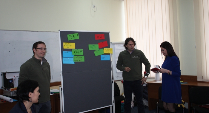 În prezent, 23de tineri specialişti participă la workshop-ul de consolidare a echipei şi de elaborare a unui plan de activităţi care să reprezinte viziunile membrilor grupului asupra preocupărilor lor viitoare şi necesităţilor profesionale, fiind ajutaţi de experţii Academiei „Nicolae Dumitrescu” – Vlad Peter Ianusevici şi Alexandru Lozinschi.