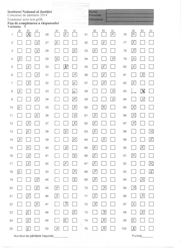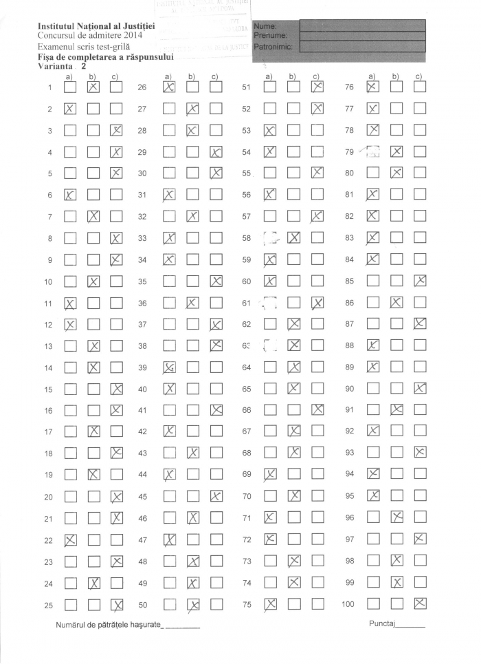 Iată răspunsurile corecte la testul-grilă: