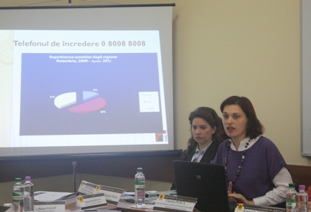 Cu un cuvînt de salut în faţa participanţilor au venit doamna Anastasia Pascari, Director executiv al INJ, şi doamna Eugenia Benigni, consilier, Programul combaterii traficului de fiinţe umane şi gende, Misiunea OSCE.