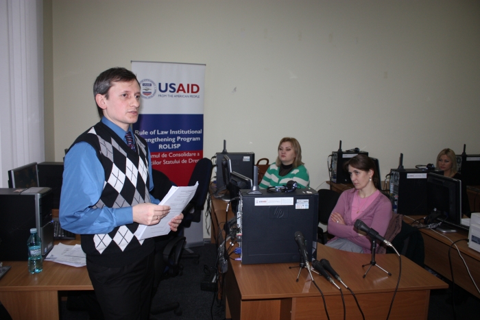 Formatorii INJ – Mihai Grosu, asistent de program, Programul de Consolidare a Instituţiilor Statului de Drept, şi Tatiana Ciaglâc, specialist principal la Departamentul de Administrare Judecătorească, – au adus la cunoştinţa asistenţilor judiciari, participanţi la seminar, modul de funcţionare şi utilizare a Programului Integrat de Gestionare a Dosarelor şi a Sistemului de înregistrare audio a şedinţelor de judecată.